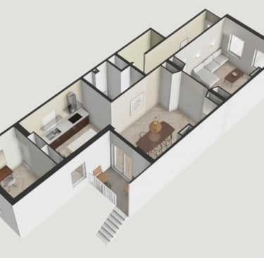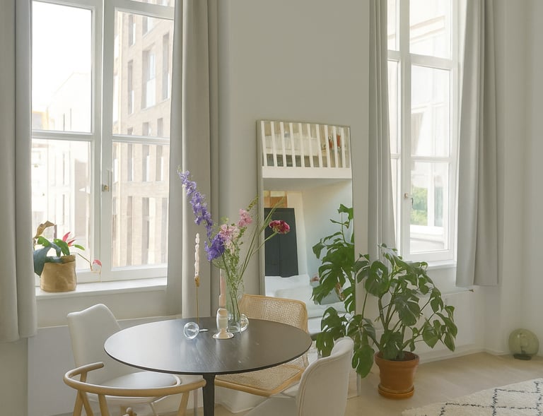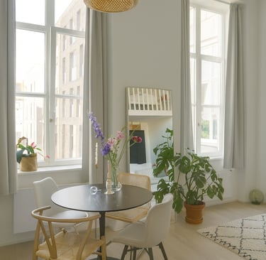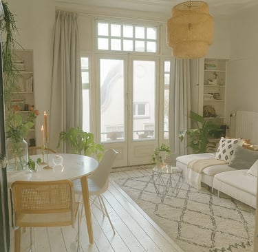 In deze galerij neem ik je mee door interieurs die ik met zorg heb ontworpen en samengesteld. Je ontdekt lichte, Scandinavische ruimtes waarin natuurlijke materialen zoals hout, linnen, wol en licht marmer, de hoofdrol spelen. Zachte kleuren, subtiel textuurgebruik en een evenwichtige indeling vormen de basis van elk ontwerp.